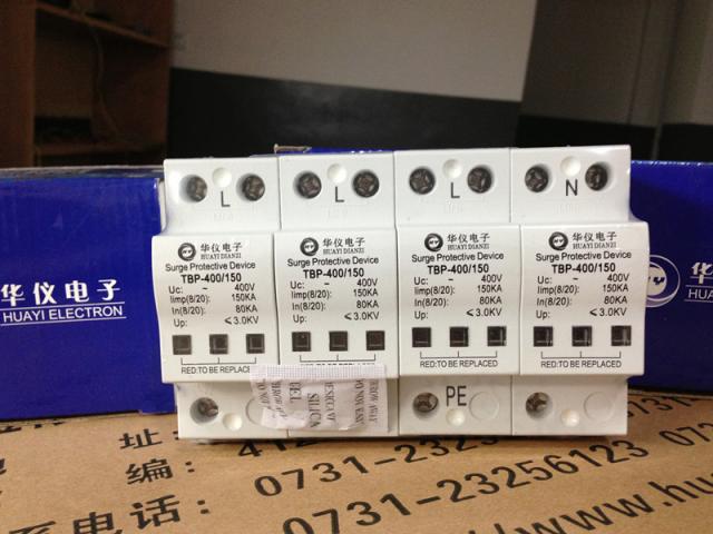 在三相四線制系統(tǒng)中,三條相線和一條零線對接地線之間均接有保護器(見圖1)。在正常情況下保護器處于高電阻狀態(tài),當電網因雷擊或者其它原因出現浪涌過電壓時,保護器將立即在納秒級時間內迅速導通,將浪涌過電壓引入大地,從而保護了電網上的用電設備,當該浪涌電壓通過保護器,且消失后保護器重新變到高電阻狀態(tài),從而不影響電網的正常運行。電涌保護器電氣原理圖見圖2。