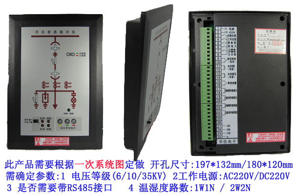 開關狀態(tài)指示儀集成了一次回路模擬圖、斷路器位置、開關狀態(tài)、接地閘刀位置、彈簧儲能狀態(tài)、高壓帶電指示、高壓帶點閉鎖及溫、濕度控制等多功能于一體,指示功能可分可合,用戶選用時只要提供一次方案圖即可。另外產(chǎn)品還可以根據(jù)用戶的要求實現(xiàn)回路電量參數(shù)及溫、濕度等控制功能產(chǎn)品一體化布局配套裝備于開關柜,這將簡化過去開關柜的面板布局。它將取代現(xiàn)有的一次回路模擬指示牌、電磁式開關狀態(tài)指示器、接地指示器等多種控制、指示裝置,同時選配通訊功能,可將所有開關狀態(tài)和溫濕度情況上傳至監(jiān)控中心